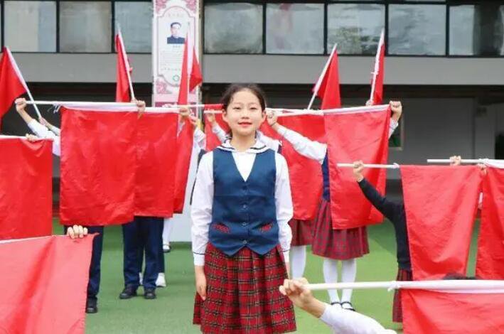 五年級代表隊運動場上,各方陣排著規整的隊伍、穿上一致的服裝,師生們個個精神飽滿,陽光和生機灑滿了校園的每一處旮旯。