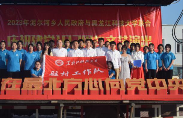 7月3日,黑龍江科技大學與綏化市綏棱縣泥爾河鄉政府聯合舉行的「社會實踐進底層,村莊復興文明行,藝心向黨慶七一」文藝演出在泥爾河鄉政府駐地舉行。來自大校園園的20多位誌願者和師生代表與泥爾河鄉文藝主幹聯袂為全鄉大眾演繹了一臺精彩的文藝盛宴。村莊復興,文明先行。本次文藝演出,黑龍江科技大學以大學生社會實踐為關鍵,以與綏棱縣校地共建合作為載體,以推動村莊文明復興為目標,以文明會聚民意,用文藝傳播能量。整場演出內容豐富、形式多樣,充滿了對黨和國家的深情,激發了鄉民們的愛黨愛國情懷。